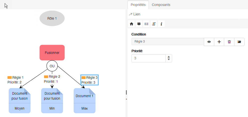Depuis les propriétés du lien qui porte la règle, préciser dans la section “Options” la priorité de la règle par rapport aux autres branches.