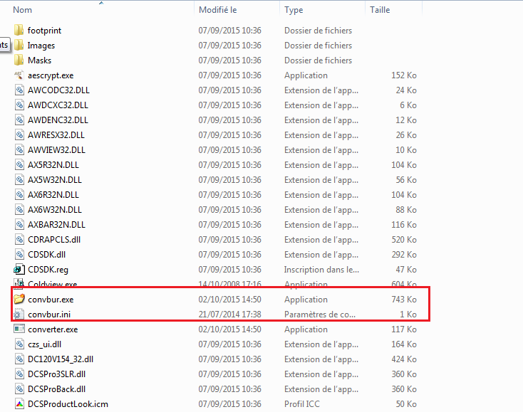 - Convbur.exe : Utilisé pour le classement des documents et découpe balises.