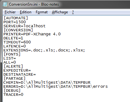 ENGINE=Sélection du moteur de conversion 2 moteurs de conversions sont disponible : imprimante virtuelle (valeur PRINTER par défaut) ou Microsoft Office (OFFICE) (non actif pour l’instant)