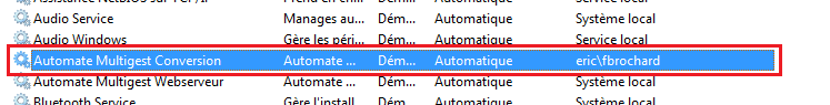 Pour le fonctionnement de la conversion, il faut un service qui s’appuie sur l’exécutable automateSrv.exe. Ce service ce nomme « automate multigest conversion »