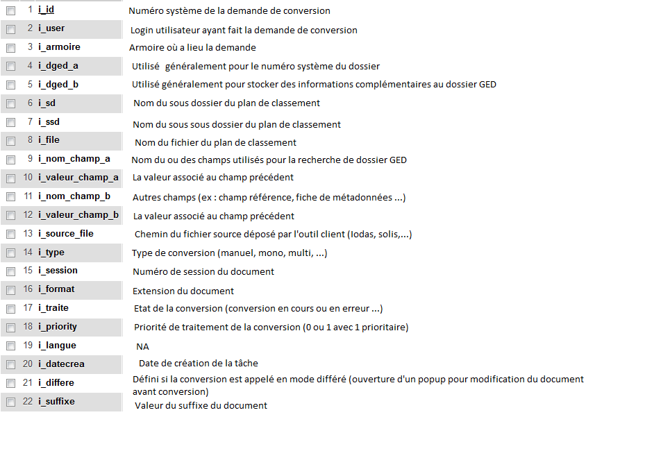 - ITRAITE = 0 : Il s’agit des documents en attente de conversion