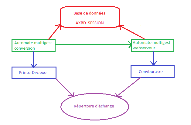 On utilisera aussi le service « automate multigest webserveur » pour communiquer avec la base de données pour entrer les informations dans la table axbd_session ainsi que pour le classement des documents avec le convbur.exe