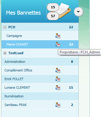 Infobulle indiquant le nom du propriétaire de la bannette (au survol de la souris)