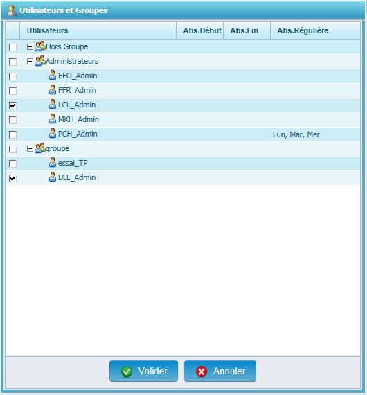 L’utilisateur peut sélectionner 1 ou plusieurs délégués (dans le cas d’une sélection multiple, les noms des remplaçants sont stockés dans le tableau)