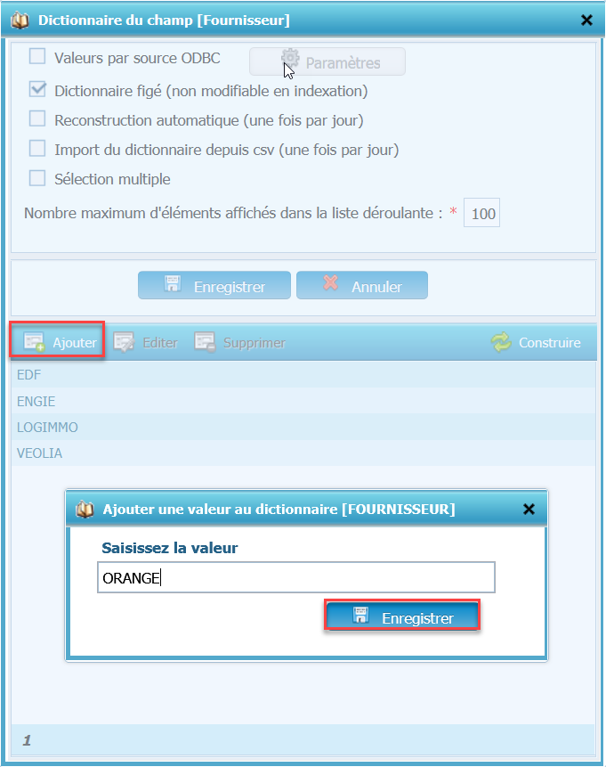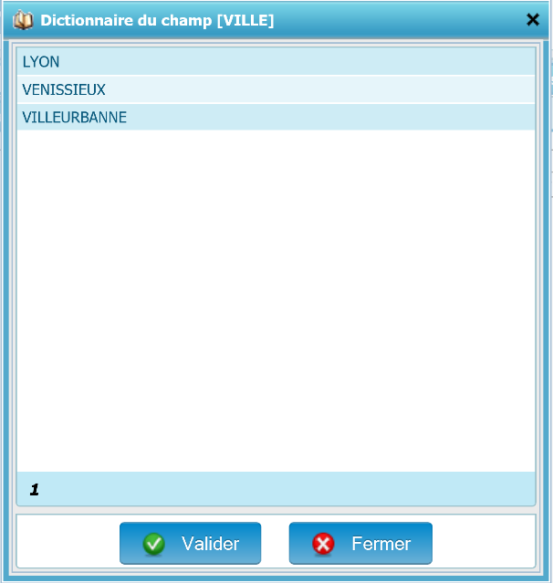 Liste : Les index apparaissent sous forme de liste déroulante ou bien en saisie libre si non cochée.