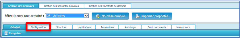 L’administration d’une armoire s’effectue via l’utilisation d’onglets.