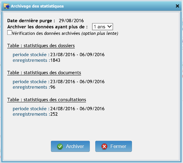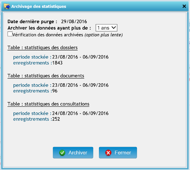 Il est possible d’archiver les événements documents et dossiers d’une armoire. Cela permet de réduire la taille des tables de la base de données, et donc d’améliorer les performances d’utilisation.