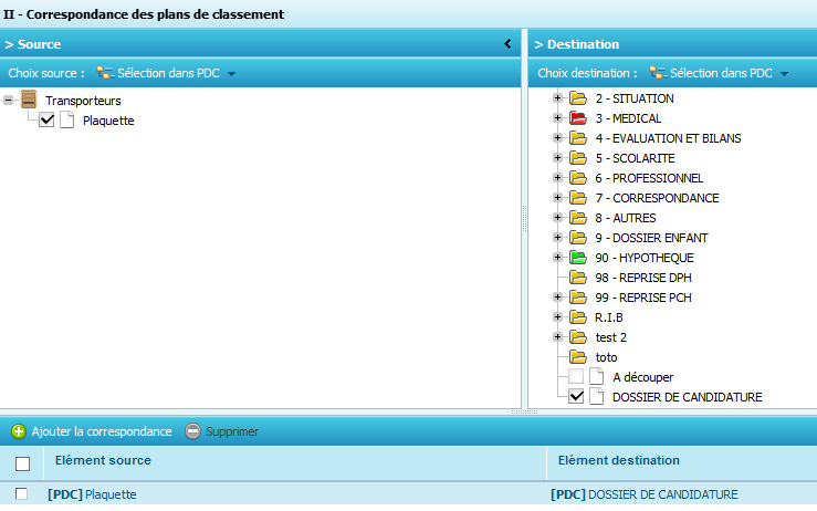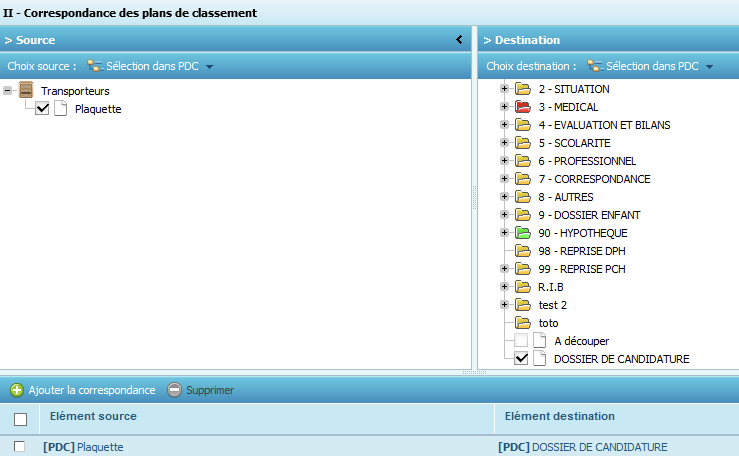 Sélection dans le PDC : sélection dans de fichier dans le plan de classement