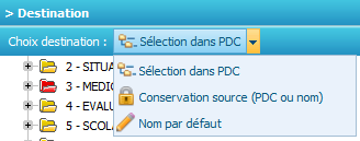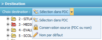 Conservation source (PDC ou nom) : Conservera le plan de classement initial ou le nom initial du fichier source