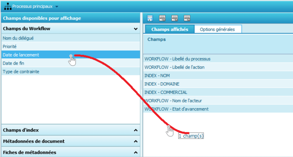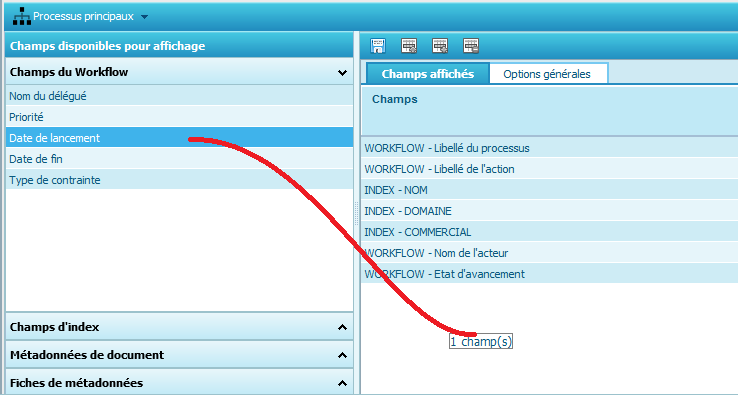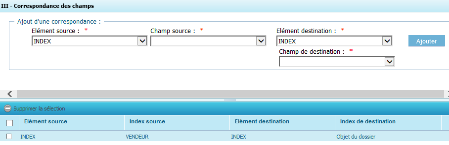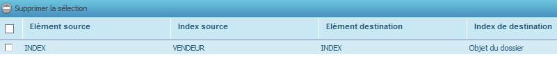 Elément destination : Peut-être un champ de la fiche index ou d’une fiche de métadonnées associée