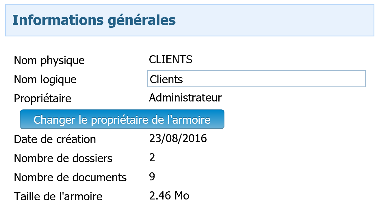 Le nom physique est le nom de l’armoire dans la base de données (les caractères spéciaux sont exclus).