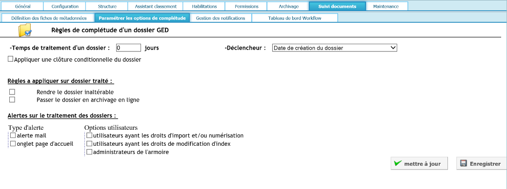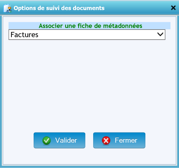 Il faut donc au préalable créer une fiche de métadonnées pour les documents de l’armoire en mode fichier avec l’option de suivi.