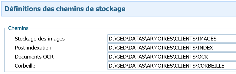 - Le répertoire de stockage des documents ayant subi une phase d’océrisation (Transformation automatique d’un fichier image en fichier texte pour la recherche dans son contenu)