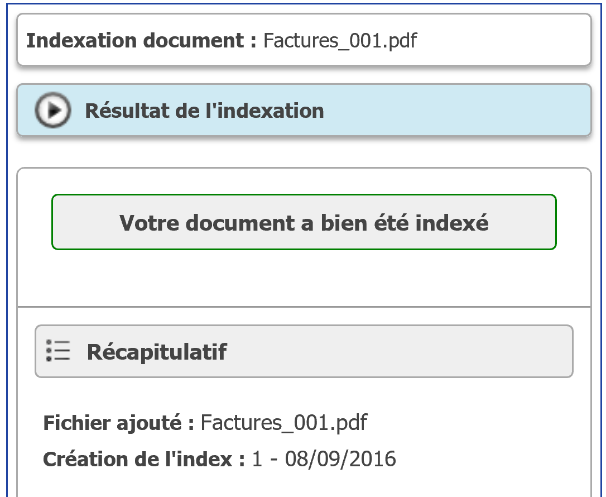 - Afficher le récapitulatif d’indexation : En fin d’indexation, une fenêtre affiche un récapitulatif des informations renseignées