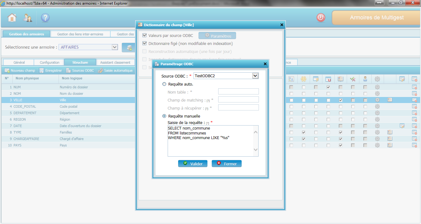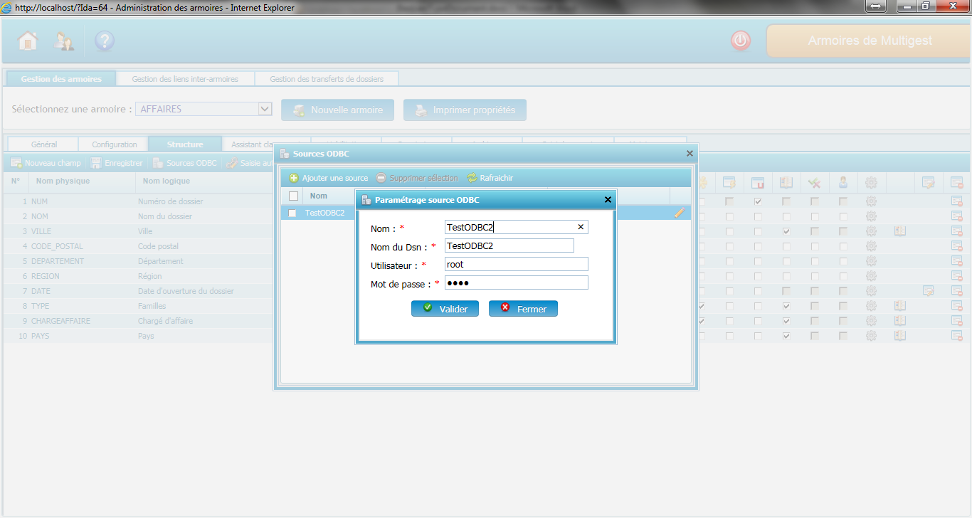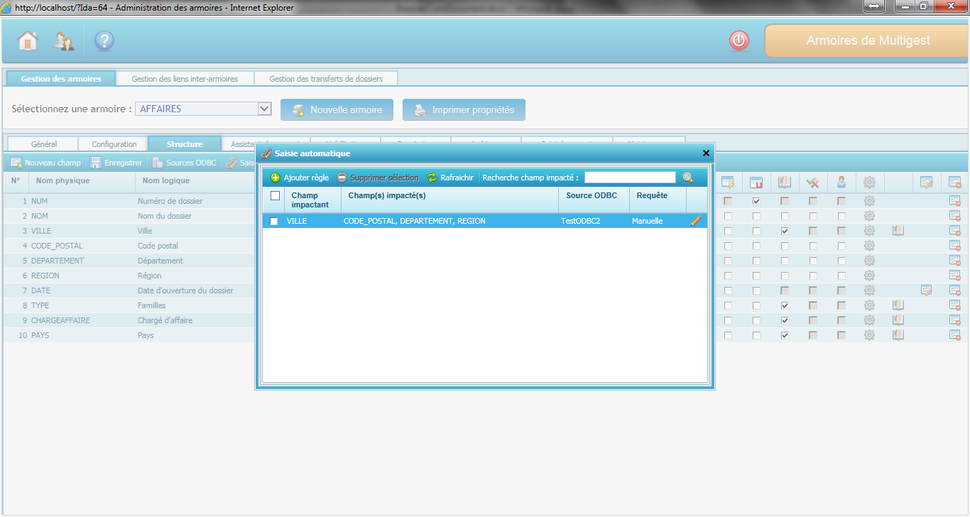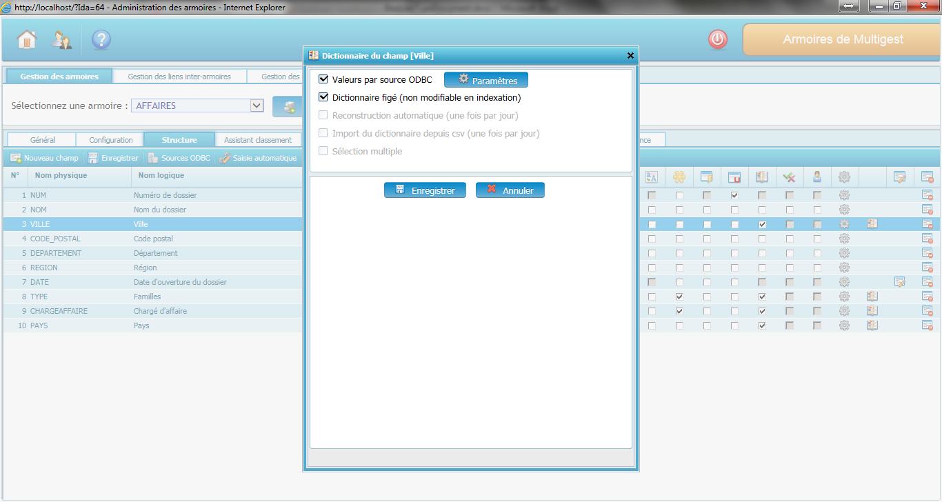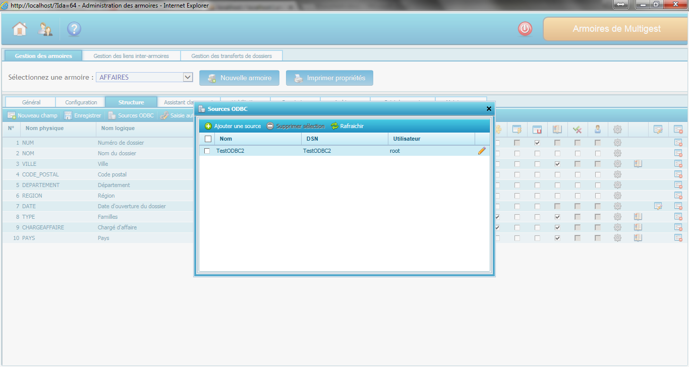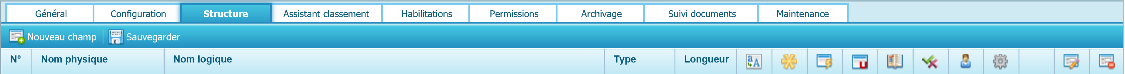 L’onglet « Structure » permet l’ajout des champs de description de l’armoire.