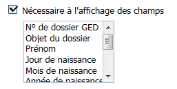 Cette option est utile dans le cas d’une création ou modification de dossier par balise où la vérification au préalable de l’existence d’un dossier de travail se fait par défaut sur son nom ou sur l’ensemble de champs transmis si aucun nom n’est précisé dans la balise GEDMDATA. Cela permet par ailleurs de distinguer les champs utilisés pour la recherche de ceux utilisés pour la création ou modification.