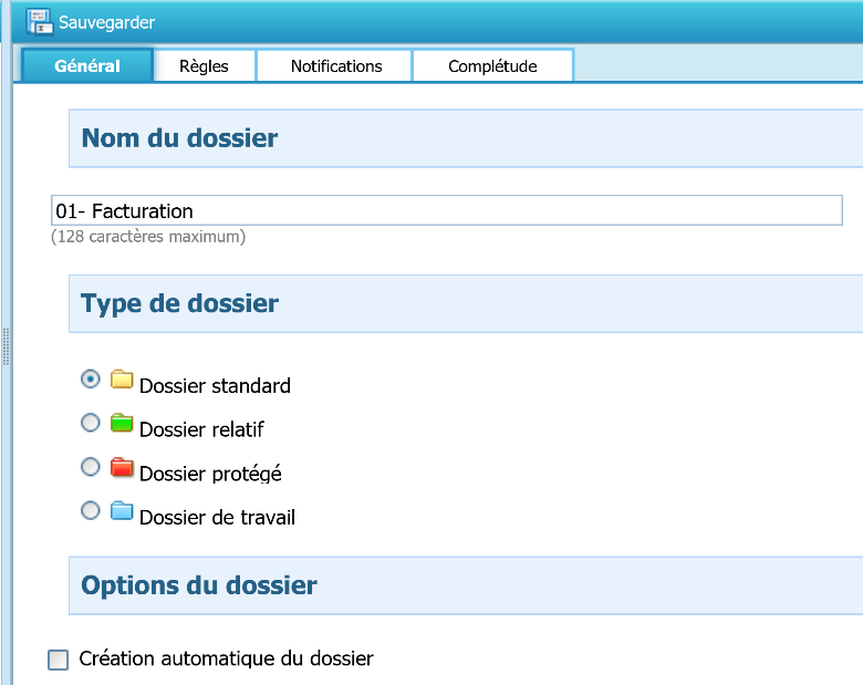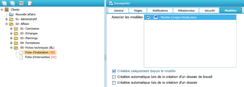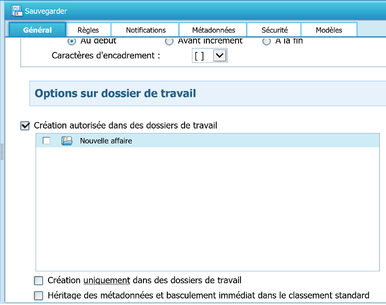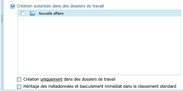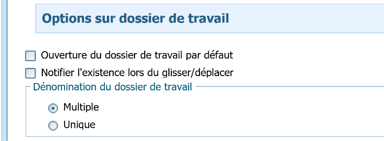 Il est possible de modifier le fonctionnement de création, de copie et/ou déplacement, d’un dossier de travail par le biais de l’applicatif.