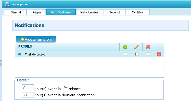 - Définition de la fréquence : Choisir la fréquence pour la première relance puis la fréquence de la dernière notification