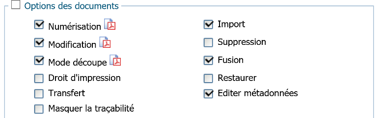 - Permissions sur fichier : Si cette case est activée, il sera proposé à l’utilisateur de définir pour chaque document, les utilisateurs qui auront accès au fichier créé