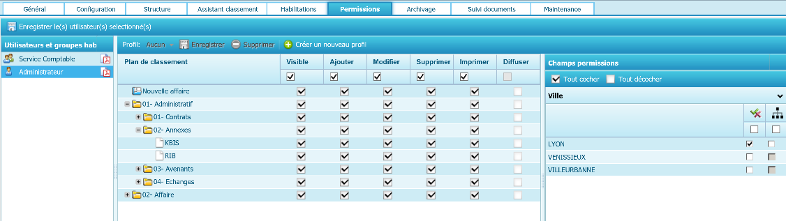 - Permissions sur dossier : Si cette case est activée, il sera proposé à l’utilisateur de cocher les utilisateurs qui auront accès au dossier GED créé