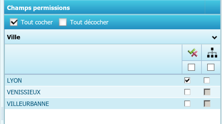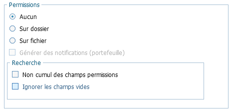 Recherche (Non-cumul des champs permissions) : Si cette case est activée, pas de cumul des champs permissions pour la recherche.