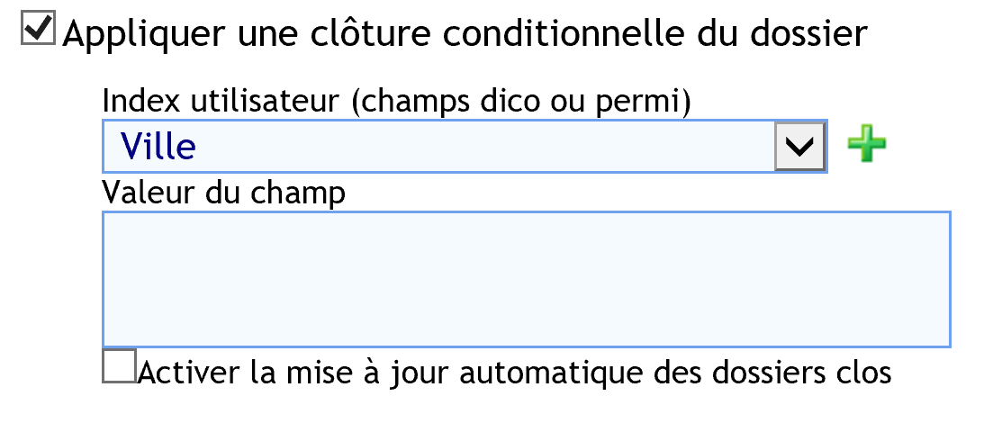 Permet d’activer la réouverture automatique du dernier dossier de travail dont le nom ou les métadonnées uniques transmis lors de la demande de création d’un dossier de travail ne correspondent qu’à des dossiers clos.