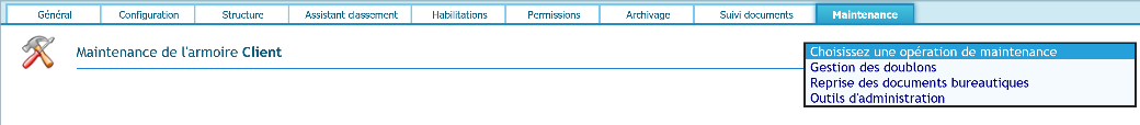 Lors d’une recherche dans une armoire possédant un plan de classement hiérarchisé, le menu suivant sera proposé :