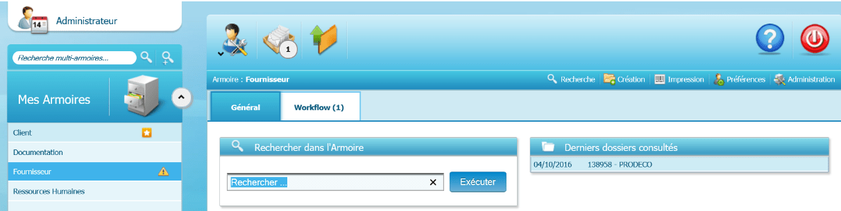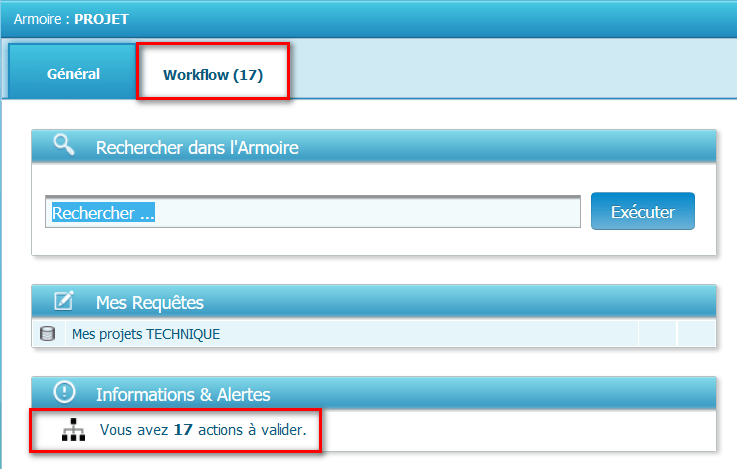 Dans la page d’accueil, via l’onglet Worklow de l’armoire.