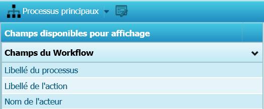 Les champs disponibles pour affichage, sont tous les champs qui peuvent être utilisée pour être affichés dans le tableau de bord des Workflows.