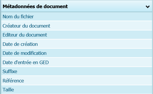 Champs de métadonnées de document : Il s’agit de toutes les informations systèmes concernant le document. (date de création, nom du fichier, …)