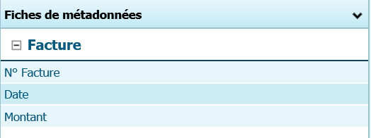 Champs de fiche de métadonnées :Visible uniquement si une fiche de métadonnées est associée au document. Il s’agit de pouvoir sélectionner les champs de la fiche de métadonnées définis lors du paramétrage d’un type de document