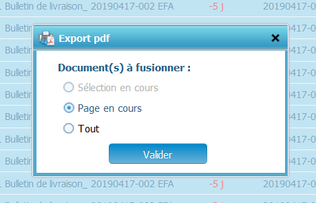 Par exemple, si la page affichée lors du lancement de l’export est la page 2 et il existe des actions sélectionnées dans d’autres pages 1 et ou 3, l’export prendra en compte toutes les actions sélectionnées et les documents correspondants seront inclus dans le document final.