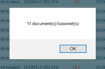 Lorsque la fusion est terminée un message apparait qui indique le nombre de documents fusionnés.