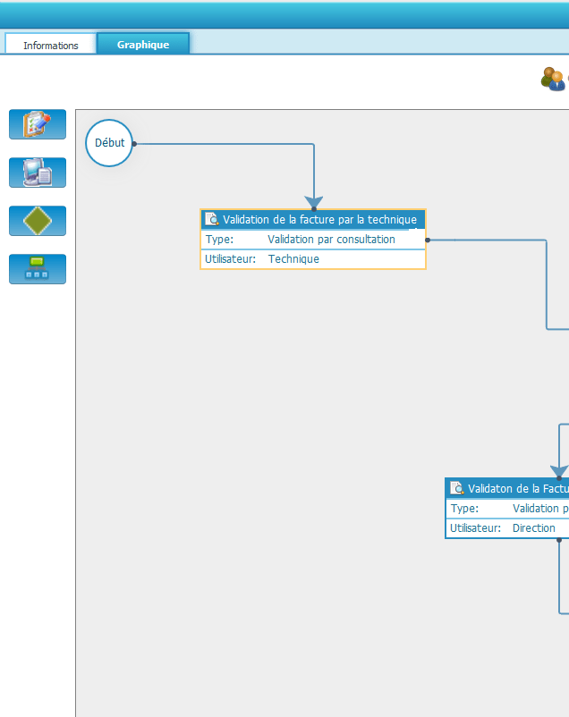 Un Workflow créé contenant des tâches qui permettent l’attribution des acteurs