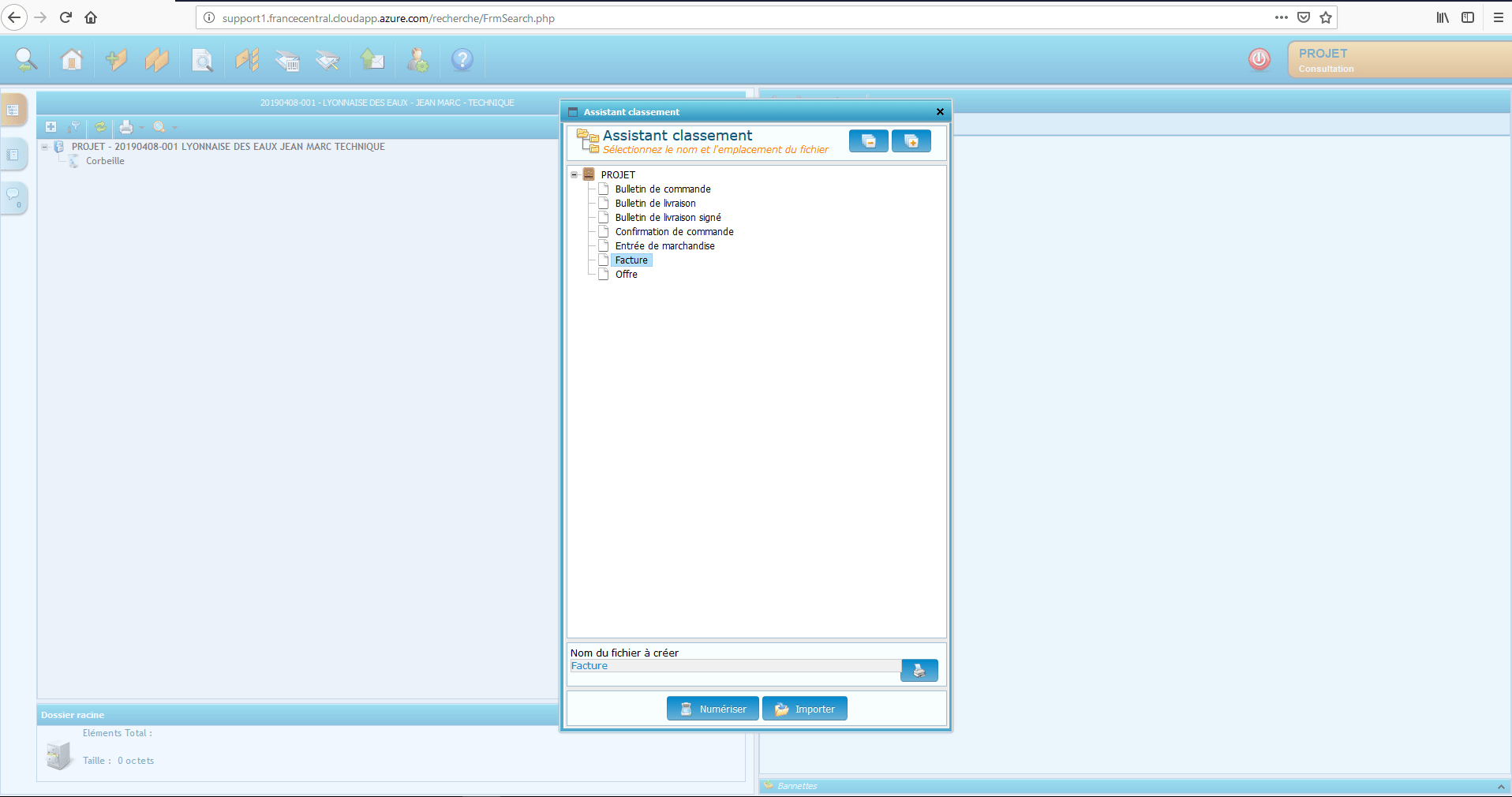 Se connecter en tant qu’utilisateur ayant des droits d’ajouter d’un document dans l’armoire, Importer un document dans l’armoire dans le type de document défini dans le processus paramétré.