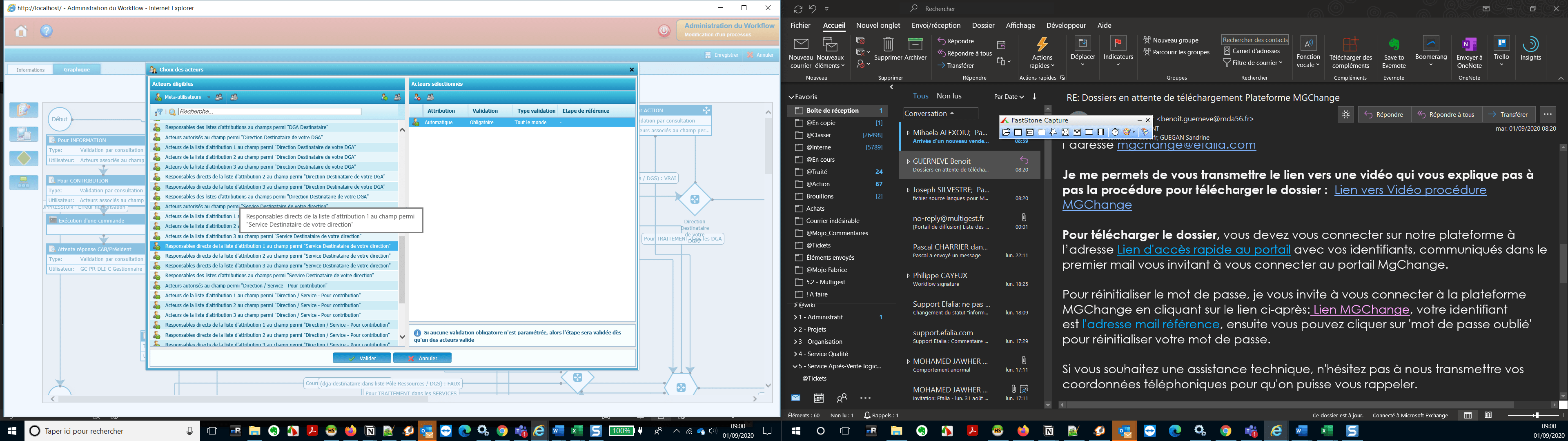 Dans le paramétrage des workflows, il existe plusieurs types de méta-utilisateurs, mais il en manque au moins une qui est absolument nécessaire dans le cadre d’une activité avec plusieurs utilisateurs : le fait de pouvoir affecter une tâche à un utilisateur à définir, mais au sein d’un périmètre d’utilisateurs défini dans le paramétrage de la tâche (ex : un groupe). Par exemple, je dois affecter une tâche à un de mes supérieurs, mais si j’ai choisi dans mon paramétrage “utilisateur à définir”, j’aurais la liste de tous les utilisateurs qui va apparaître. Alors qu’idéalement il ne devrait y avoir que mes cadres.