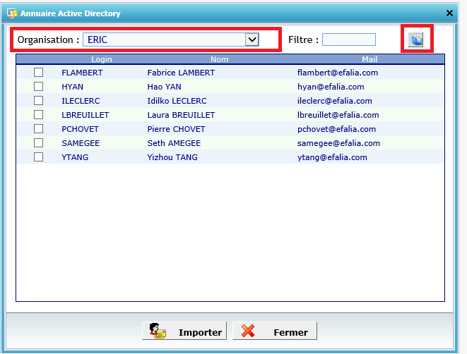 Choisir les utilisateurs à importer en les cochant puis cliquer sur importer.
