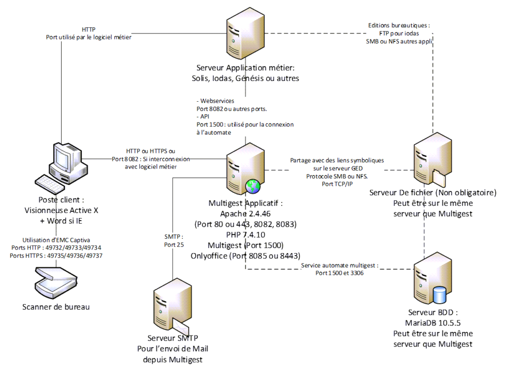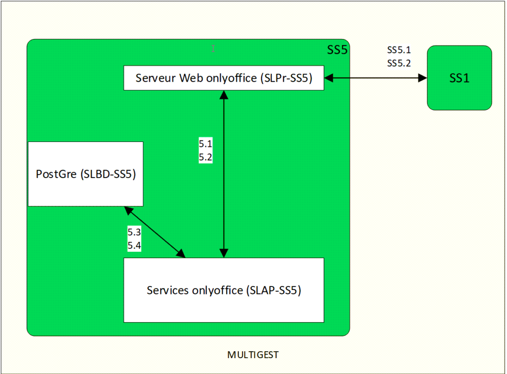 Les flux « SS5.1 » et « SS5.2 » correspondent aux échanges entre le PHP multigest et nginx onlyoffice.