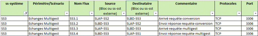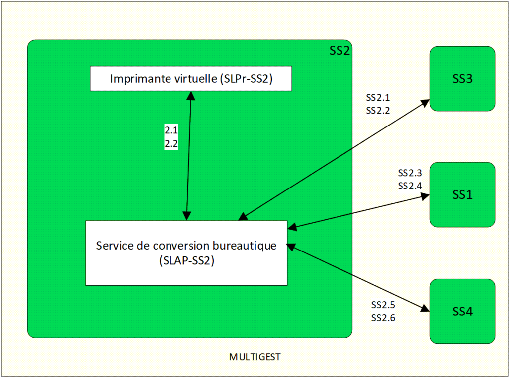 Les flux « SS2.1 » et « SS2.2 » correspondent aux échanges entre la conversion multigest et la base de données.