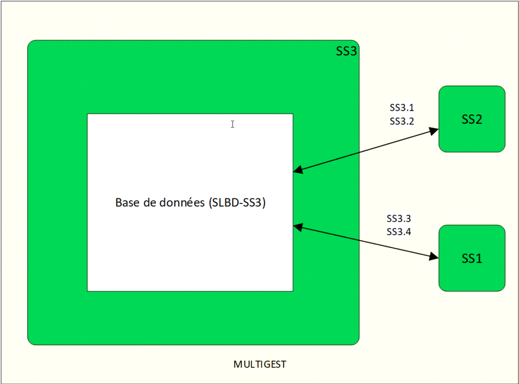Les flux « SS3.3 » et « SS3.4 » correspondent aux échanges entre multigest et la base de données.
