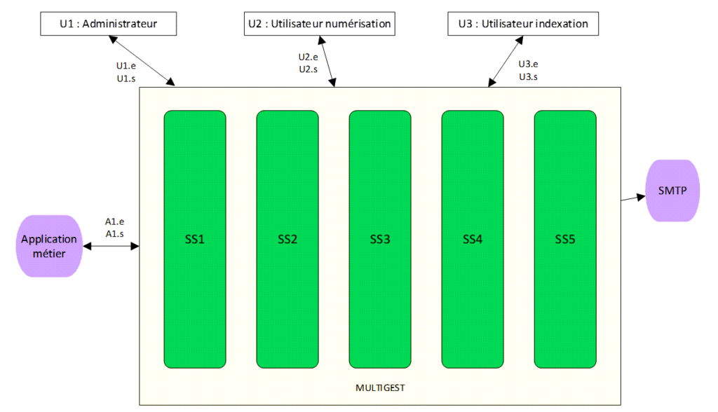 - SS1 : Interfaces fonctionnelles de Multigest (bannettes, numérisation, recherche, consultation, indexation).
