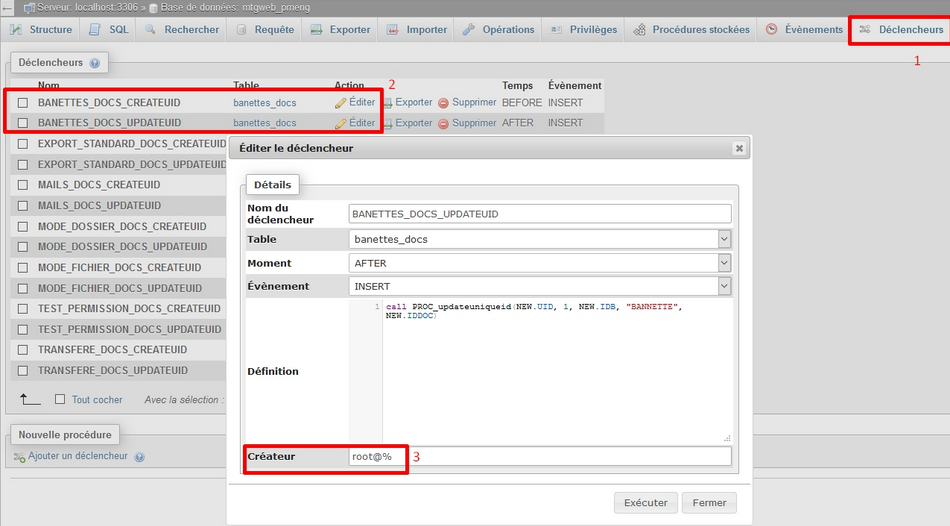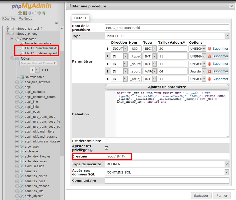 Procédures de la base de données mtgweb.