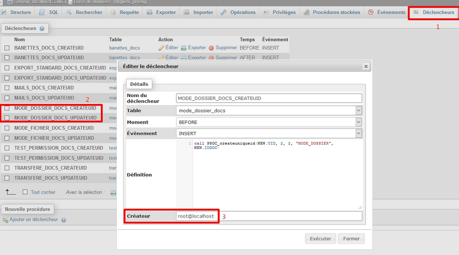 Vous avez deux procédures à modifier dans le créateur :