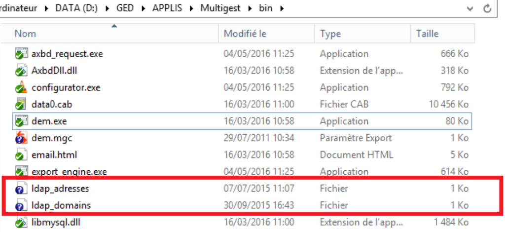 - Modifier deux fichiers de configuration se trouvant dans le répertoire d’installation de MultiGest/bin. Si ceux-ci n’existent pas il est nécessaire de les créer. Ces deux fichiers sont :