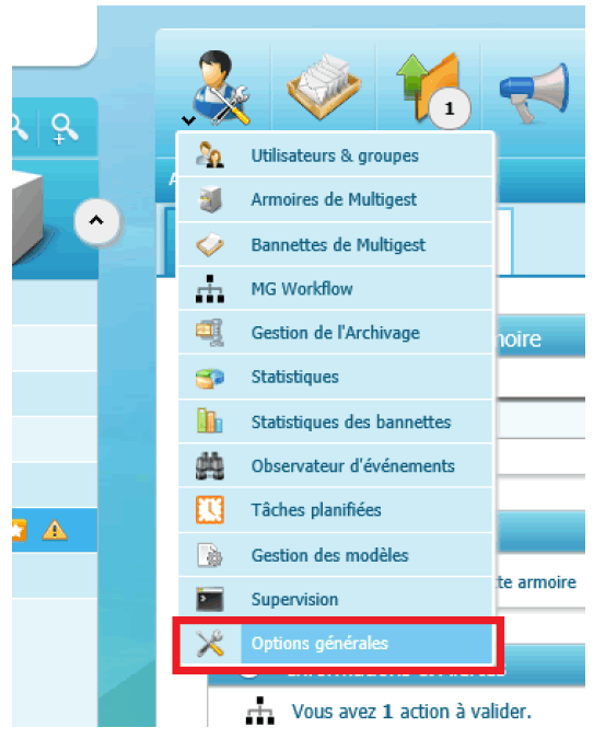 Se connecter dans MultiGest avec des droits administrateurs et aller dans le menu d’administration /options générales