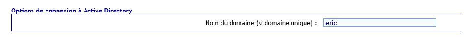 Dans l’onglet général à « options de connexion à active directory », mettre le nom de votre domaine sans le . (Mettre le nom raccourci)