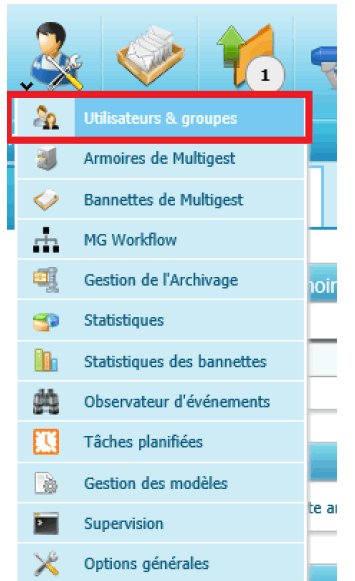 Pour importer les utilisateurs de la GED, il faut se connecter avec un compte admin et aller dans le menu d’administration/ Utilisateurs et groupes