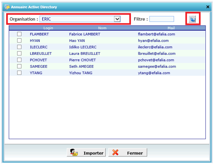 Choisir les utilisateurs à importer en les cochant puis cliquer sur importer.