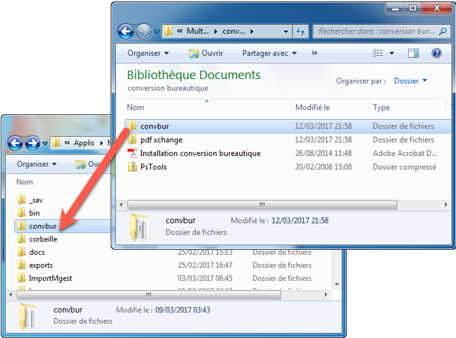 La conversion bureautique s’installe par la copie du répertoire « convbur » se trouvant sur le cd ou le zip fourni dans le répertoire d’installation de MultiGest.