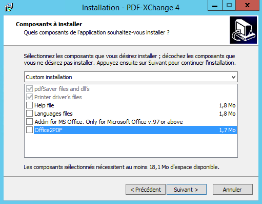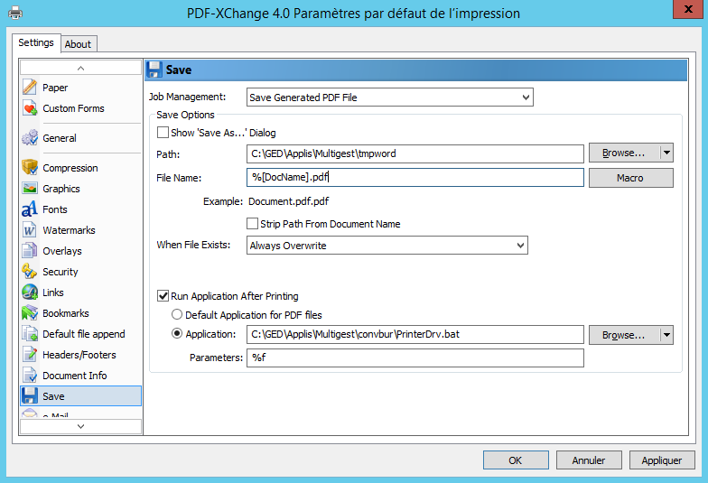 Pour cette conversion, il est nécessaire d’installer l’imprimante virtuelle de PDF-XChange (présente dans le répertoire « pdf xchange » à la racine du CD : « PDFX4SA.zip ».